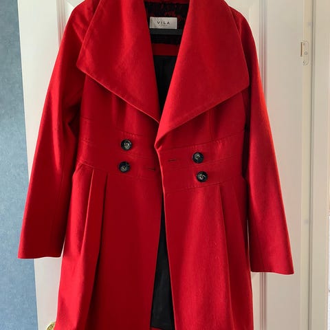 Flott mørk lilla tynn kåpe/jakke i ullstoff str 36