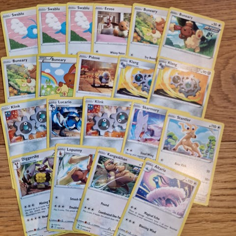 Egnet for samling, bytting eller bruk i Pokémon Trading Card Game. Antall, årgang og spesifikke sett fremgår ikke fullt ut av bildene og kan kontrolleres nærmere ved behov.