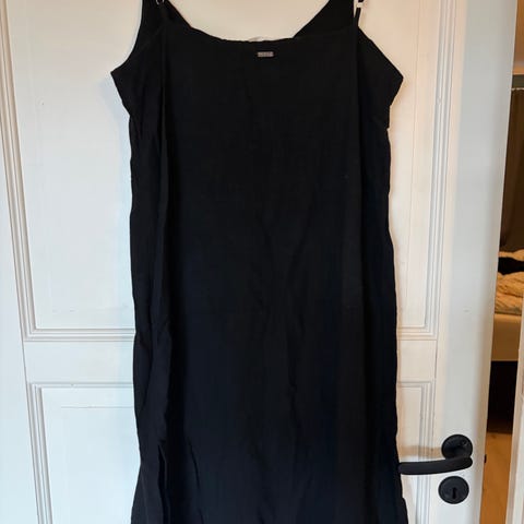 Sort, langermet, knelang kjole fra Ko:Ko. Fin hals med liten krage. Fin, innsvinget fasong