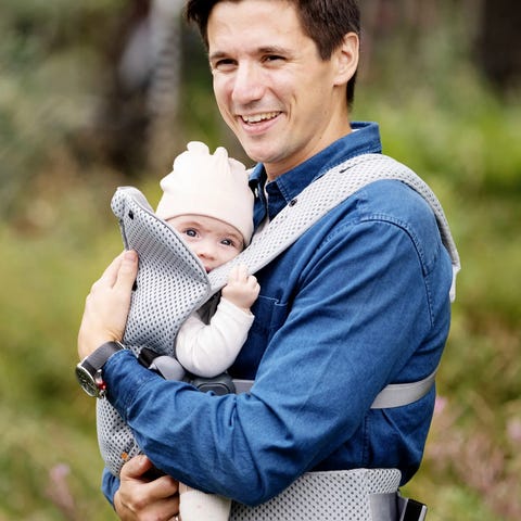 Selger en pent brukt Gabesy bæresele. Den har avtagbart magebelte slik at barnet kan bæres på hofte og lignende etter hvert, med oppbevaring☺️ Barnet kan bæres innover og utover.