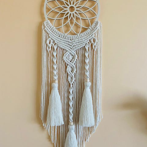 Medium håndlaget Makrame selges.