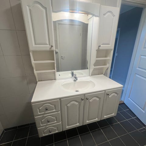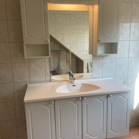 Kjøpt et renoveringsbolig, må gjøre den riveklar. Grei baderomsinnredning, trenger vask og litt kjærlighet.