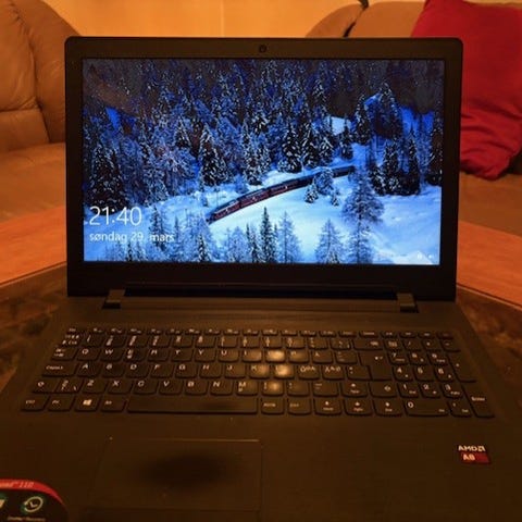 Pent brukt Lenovo Yoga 500 2 i1 bærbar PC med 14 tommer skjerm. Modellen har hengsler som gjør at skjermen kan vippes rundt som et nettbrett for fleksibel bruk. Tastaturet er i full størrelse med styreflate under, og maskinen har innebygd webkamera i rammen over skjermen. Kabinettet er hvitt på utsiden og mørkt rundt tastatur og skjerm. På sidene finnes ulike tilkoblinger, blant annet hodetelefonutgang og kortleser. Strømadapter følger med etter det som vises på bildene.