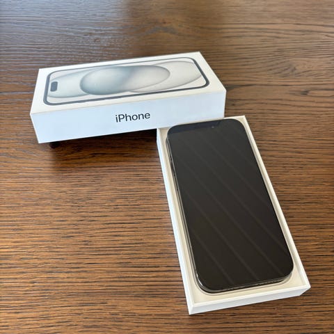 Selger en iPhone 15 Pro med 128 GB lagring i fargen white titanium. Har kvitteringen.