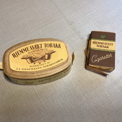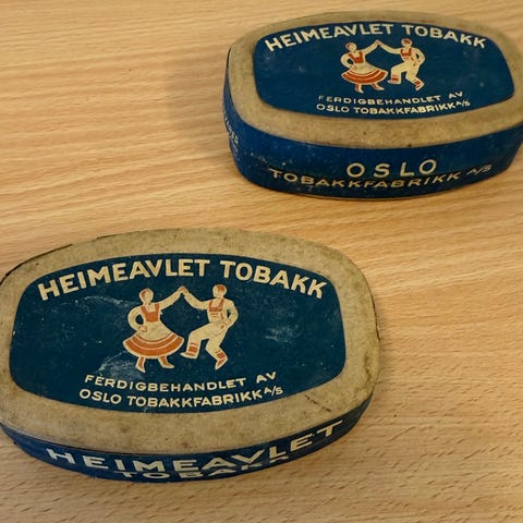 Gammel uåpnet eske fra Oslo tob. fabrikk Hjemmeavlet. Selges for Kr. 400.-. Kjøper betaler frakt.