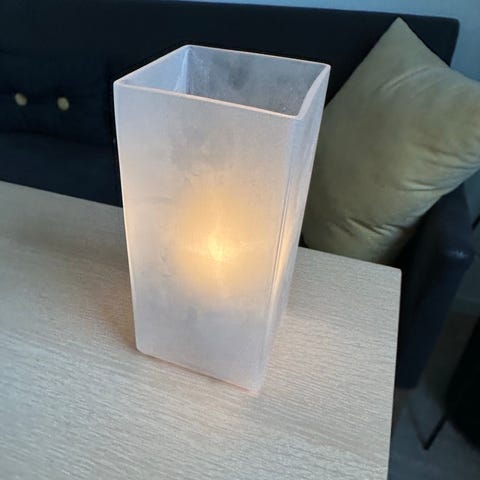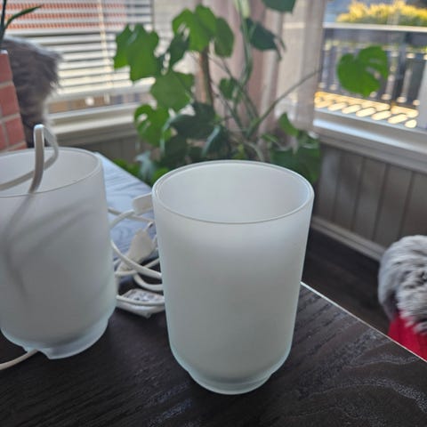 6 batteridrevne kubbelys med fjernkontroll. Kan bestemme styrke og om du vil ha levende lysfunksjon, eller stillestående.