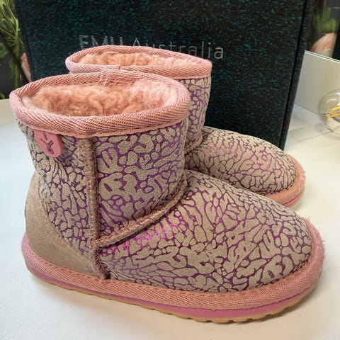 Støvler er i lyserosa farge, og kommer med originale eske.
