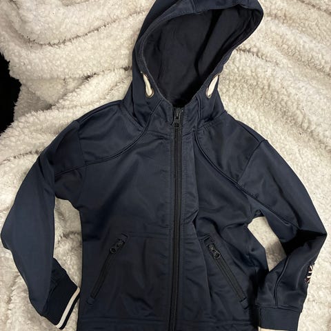 Jakke fra Petite Cherie i str 92. Lite brukt av et barn. Lys blå farge med lommer og gullknapper/glidelås.