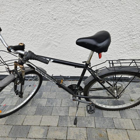 DBS terrengsykkel for herre med rammestrørrelse L og 26" hjul. Sykkelen har rett styre, felgbremser og girsystem tilpasset variert bruk på vei og enklere terreng. Rammen er utformet for voksen rytter og gir oppreist sittestilling. Passer til daglig transport, tur og fritidsbruk på grusvei og lett skogsterreng.