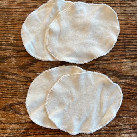 Tykke ammeinnlegg i offwhite ull. Egner seg til bruk i BH for å beskytte mot lekkasje ved amming. Kan vaskes og brukes flere ganger.