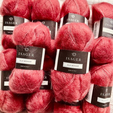 Dale Garn Myk Påfugl garn mohair ull korall og turkis