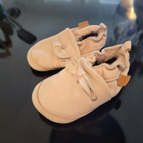 Rosa suede med stjerner. Str 24 som tilsvarer 18-24 måneder.