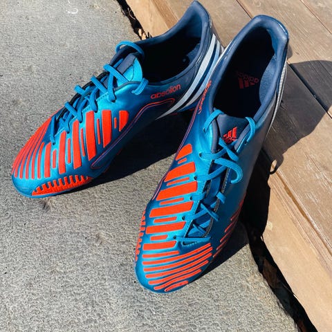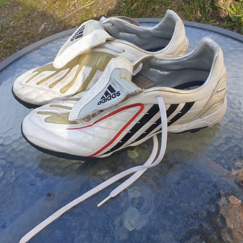 Skoene er brukt, men fortsatt i god stand. Knottene er hele og gir godt grep. Perfekte for trening eller kamp på kunstgress.