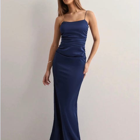 Knapt brukt, i god stand. Blondekjole med høy splitt i lys beige.