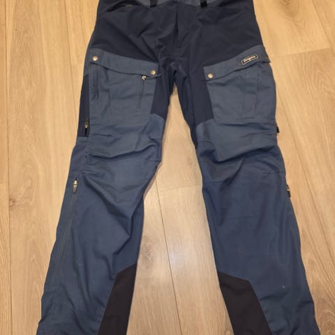Innstramming i midje. Flere praktiske lommer. Knapper nederst på bena.
