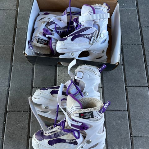 Julegave som ikke falt i smak. Helt nye skøyter, ubrukte, men uten eske. Kjøpt fra Importpris.no i november 2025. Justerbare, størrelse 37-40. Med uttakbar sokk.