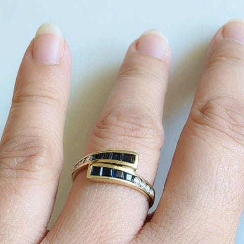Eksklusiv safirring i 14K gull og naturlige diamanter – sertifisert