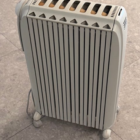 DeLonghi oljefylt radiator i hvit farge.