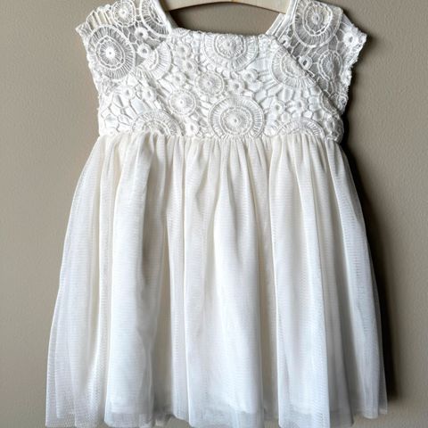 Offwhite blondekjole (str 62) og hvite lakksko til baby (str 15)