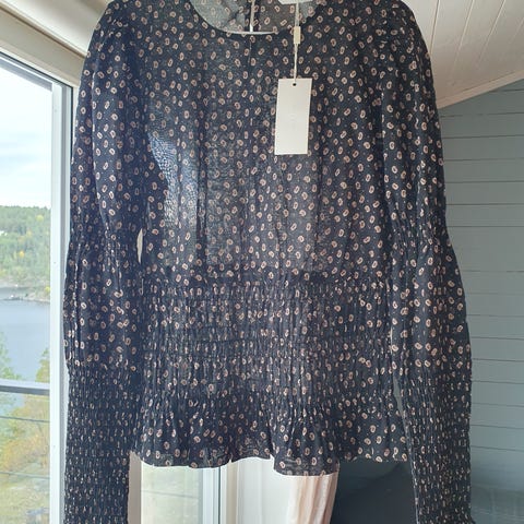 Aldri tatt i bruk. Sort med lilla blomster. Nypris 1999kr.