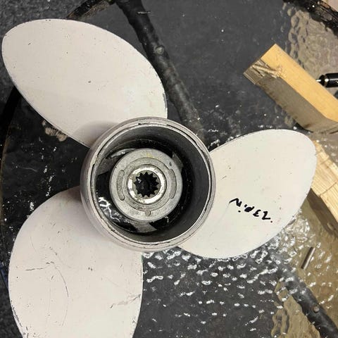 Båtpropell med 3 blader i størrelse 13 x 19-K. Propellen har splines-senter og er beregnet for montering på utenbordsmotor.