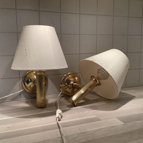 2 stk Skomaker vegg lamper i messing og hvitt glass, selges samlet for 100kr