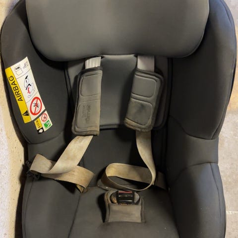 Britax Römer Max-Way Plus barnesete for barn opptil 25 kg. Barnesetet er bakovervendt og beltemontert. Det har intern 5-punkts sele med polstrede skulderstropper og justerbar hodestøtte. Trekket er i svart tekstil.