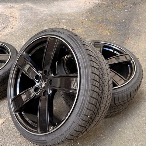 Dekkene sitter ferdig montert på felgene og er klare til bruk.