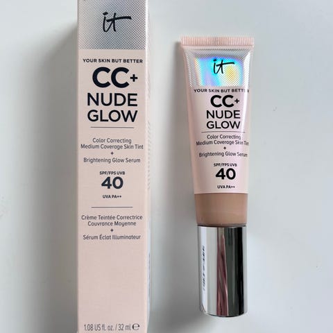 IT Cosmetics CC+ Nude Glow CC-krem med SPF 40. Lett dekkende farget dagkrem som jevner ut hudtonen og gir en naturlig glød. Inneholder solfaktor 40 for beskyttelse mot UV-stråler. Passer som base i hverdagsmakeup eller alene for en jevnere hudtone.