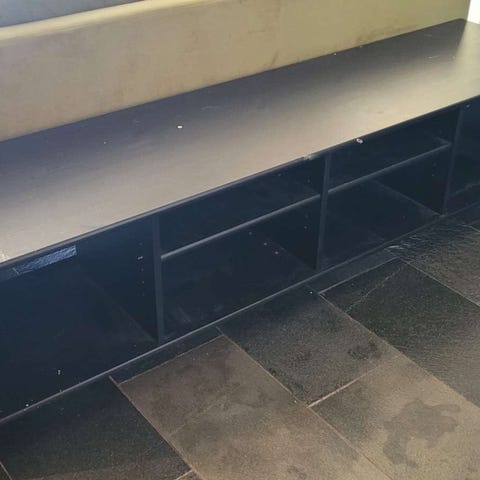 Mørkebrun tvbenk fra ikea i grei stand, har noen småriper men ikke av betydning.