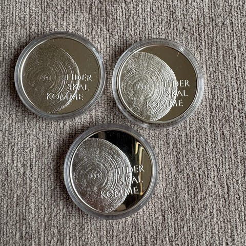 Mynten leveres i original eske fra Norges Bank med tilhørende sertifikat som beskriver utgivelsen og spesifikasjonene.