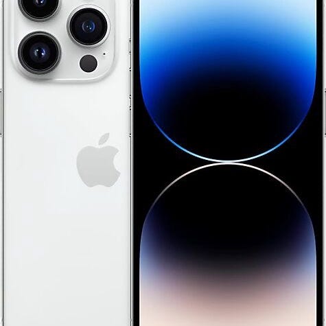 Apple iPhone 14 Pro mobiltelefon med 128 GB lagringsplass. Modellen har stor skjerm, tredobbelt bakkamera og frontkamera i skjermen. Egnet for bruk med iOS‑apper, surfing, sosiale medier, foto og video, samt daglig bruk som smarttelefon.