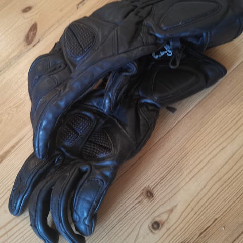 Myke hansker i skinn med fleece for. Ganske tykke, men veldig lette og behagelige. Fine kjørehansker til moped, lett motorsykkel.