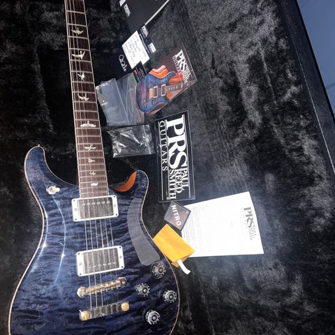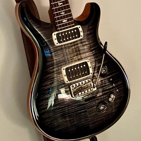 Gitaren er lite brukt og ser svært fin ut. Den har noen små avskalinger av svart lakk på kanten av kroppen. Tilsvarende ny gitar ligger på rundt 35-40.000,- hos Gear4music