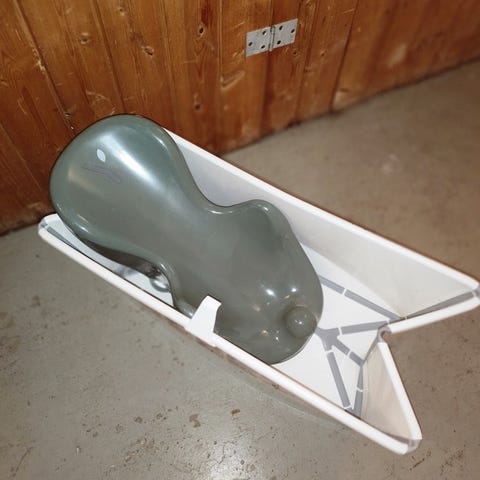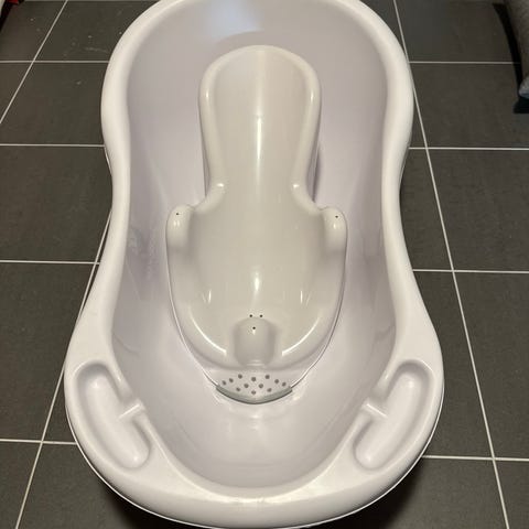 Yngri badebalje og sete. Brukt av to barn. Noen merker, men ellers fin stand.