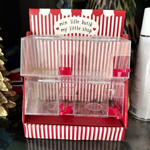 Kan fylles med godteri og man må styre gripekloen for å fange opp. Som på tivoli.