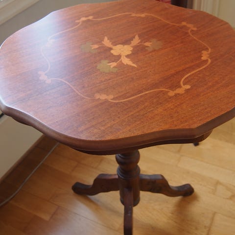 Solid stuebord med steinplate med kult steinmønster i plata. Unikt bord fra 81/82.