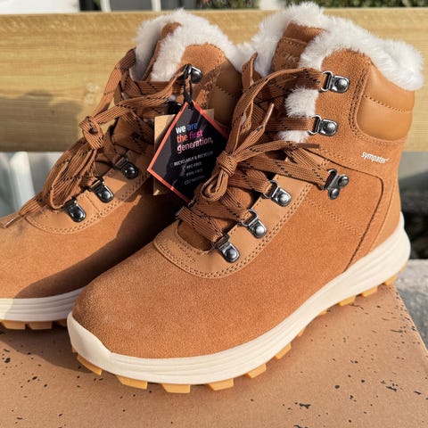 Kjøpte meg sko der ene har vært utstillingsmodell, derfor er de er litt ulike i fargen og i pelsen. Jeg har ikke fått bruk for dem så prøver å selge dem videre.