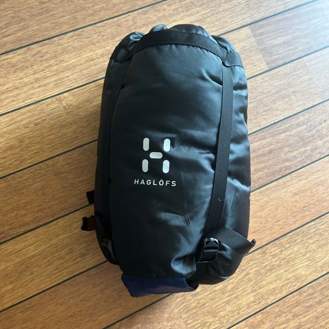 Soveposen er brukt en gang inne fordi jeg hadde feilberegnet soveplasser på hyttetur.