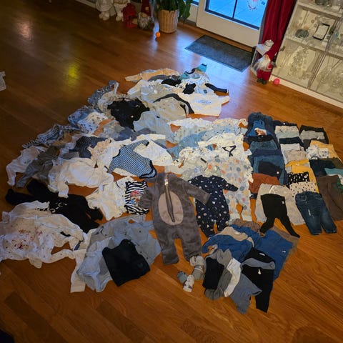 Tok et raskt bilde mens jeg la alt i en eske så du ser ca farger og mønster på klærne :)