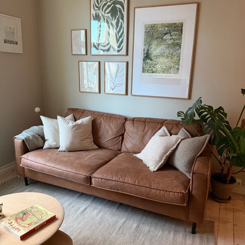 3 seter fra Slettvoll i skinn- farge Cognac