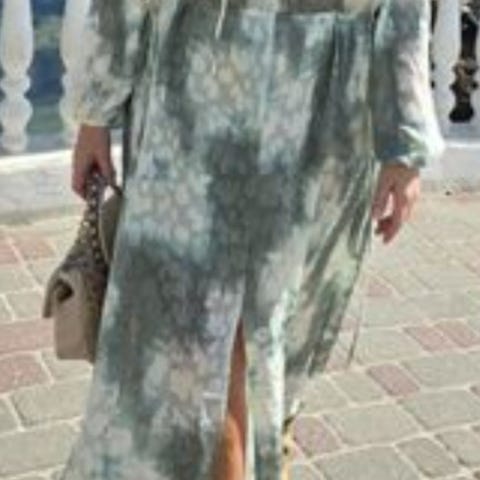 Boohoo sommerkjole i størrelse M for dame. Kjolen er beige med mørkt mønster og er laget i viskose/ bomull..Modellen har løs passform med skulderåpning og vide ermer. Den har knyting i utringningen foran og dekorative søm- og blondepartier. Lengden går omtrent til over kneet, avhengig av høyde. Egnet som sommerkjole til hverdagsbruk eller ferie.Passer str: S til L.. Brukt 1 gang.!