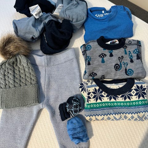 Kjøpt brukt av meg, men ikke tatt i bruk da vi fikk alt for mye i samme størrelse. Et par av plaggene har litt nupper/slitasje, elles veldig pent brukt. Kan også deles opp om noen vil ha enkelte plagg.