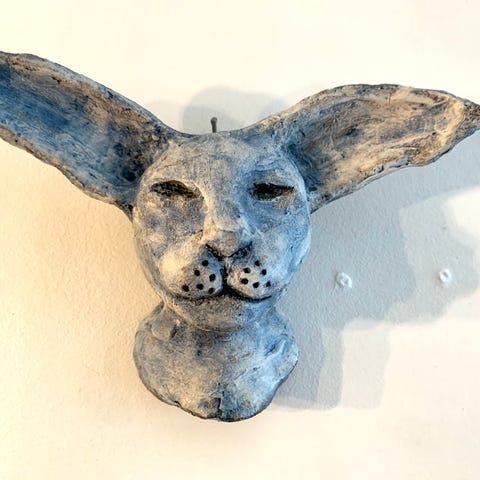 Søt blå katt/keramikk/skulptur!