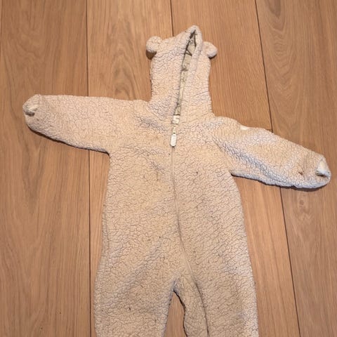 Myk og fin overall i fleece selges. Opptil 3 mnd, str 62 (6kg) Fint brukt, kan sendes eller kjøper må hente.