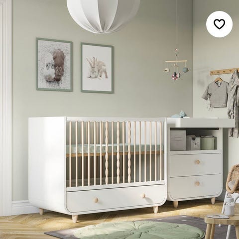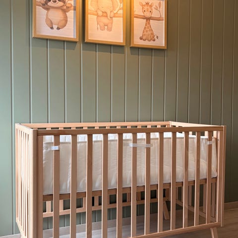 Liggende, sittende, klatrende, stående. MYLLRA sprinkelseng har en justerbar bunn, er en sikker plass å sove under alle stadiene av utviklingen, og når barnet kan komme seg inn i og ut av senga på egen hånd, så er det bare å fjerne den ene siden.