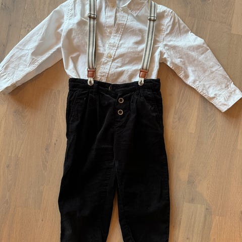 Settet består av skjorte og bukse med høyt liv, og seler som gir et klassisk uttrykk. Ubrukt med lapp. Perfekt til 17. mai 🇳🇴