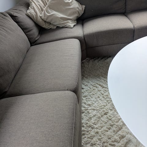 Vi har hunder, men de har ikke fått lov å være i sofaen men den har nok hundehår i seg. Støvsuger selvfølgelig før salg.