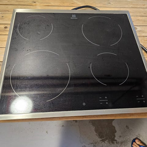 Electrolux platetopp i svart keramisk glass. Platetoppen har fire kokesoner markert i overflaten. Den er beregnet for innbygging i kjøkkenbenk. Overflaten er glatt og enkel å tørke av. Egnet for vanlig matlaging i husholdning. Strømtilkobling og nøyaktige mål må kontrolleres mot produsentens spesifikasjoner eller brukermanual.