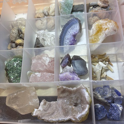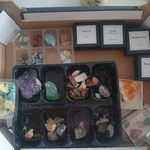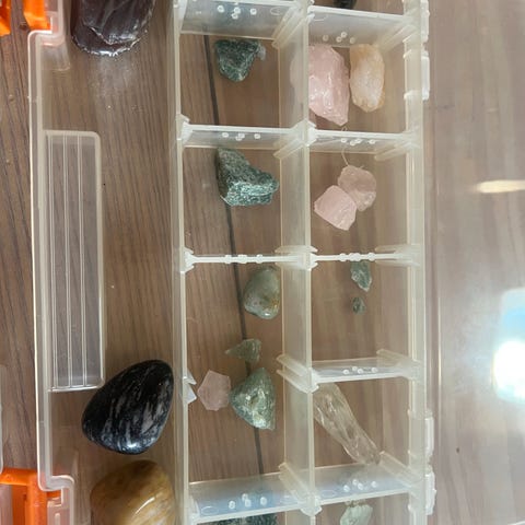 Steinsamling i plastboks
